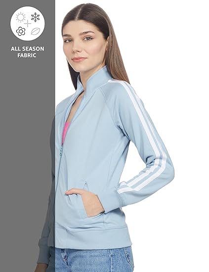 Davello Women’s Cotton Blend High Neck Sweatshirt with Full Zipper and Regular Fit Style